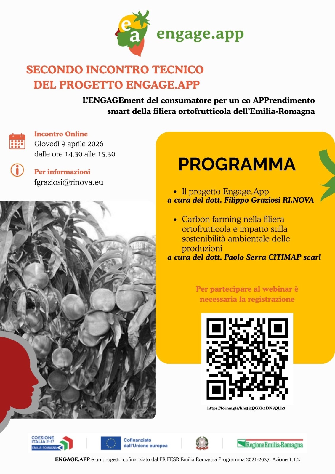 Si svolgerà online giovedì 9 aprile il secondo incontro tecnico del progetto ENGAGE.APP dal titolo "L’ENGAGEment del consumatore per un co APPrendimento smart della filiera ortofrutticola dell’Emilia-Romagna".